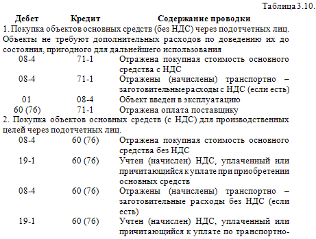 Основные типовые бухгалтерские проводки по движению основных средств отражены в таблице 3.10.